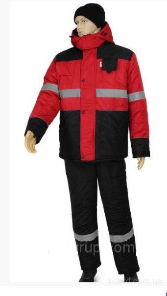 Костюм состоит из куртки и полукомбинезона. Куртка со светоотражающими полосами и кантом, с центральной застежкой на молнию, ветрозащитным клапаном на текстильную застежку с чередованием кнопок и внутреннюю планку с уголком для защиты подбородочной части от молнии. Воротник стойка, с внутренней стороны флис, съемный утепленный капюшон. На правой полочке нагрудный карман для бейджа. Полукомбинезон со светоотражающими полосами , с центральной застежкой на молнию и планку на текстильную застежку, на регулируемых по длине бретелях. На правой передней половинке нагрудный карман для сотового телефона. На спинке, по линии талии в области боковых швов, кулиса.