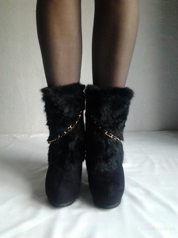 Модные ботиночки на танкетке. Отделка натуральный кролик. Танкетка13см,