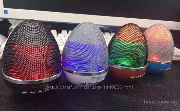 Колонки Bluetooth WS-1802 Blue - представляют собой портативные беспроводные колонки на один динамик. Благодаря им вы можете сделать свою вечеринку где угодно, включить музыку и наслаждаться ею, а также яркой играющей LED подсветкой. В них встроен разъем для чтения карт памяти Micro SD, TF, разъем USB для чтения флеш-накопителя и карт памяти через кардридер, также предусмотрено беспроводное соединение Bluetooth v 2.0 и аудио вход для подключения телефона, плеера, наушников или к компьютеру, а размеры позволяют всегда ее брать с собой. В колонку встроен цифровой радио-приемник FM станций. Встроенный аккумулятор непрерывно работает около 5 часов, его легко и просто зарядить можно через mini USB-разъем. Дизайн и цветовая гамма весьма интересны, очень удобны и подойдут каждому.