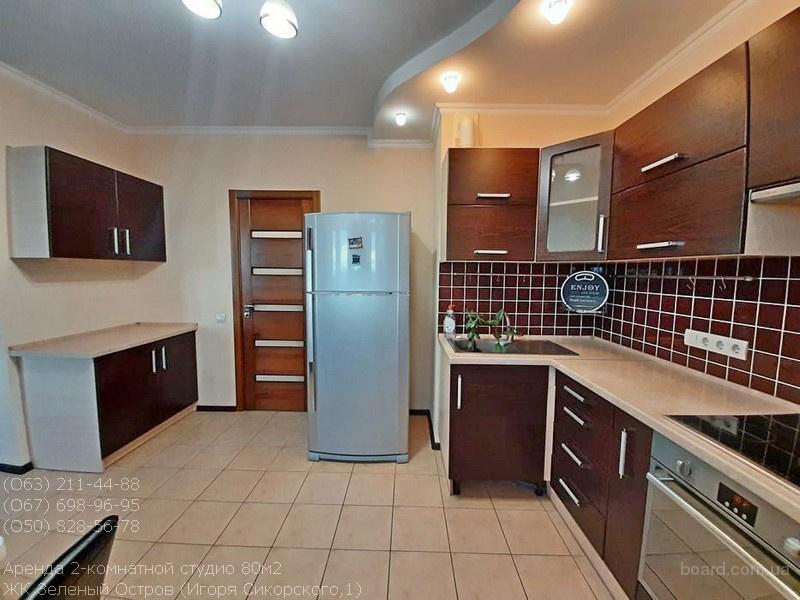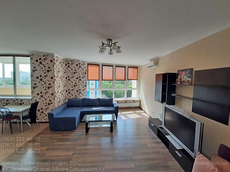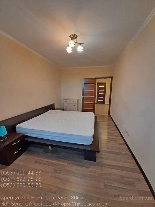 Аренда просторной 2-комнатной студио в элитном ЖК Зеленый Остров, Сикорского,1. Собственник рассматривает аренду долгосрочно! S=80/39/16м2, 7/24к, отдельная спальня, гостиная студио с кухней, балкон + лоджия. Квартира с отличным современным ремонтом, полностью меблирована и укомплектована необходимой бытовой техникой, счетчики на воду и тепло. Развитая инфраструктура, рядом посольство США, чудесный парк, метро Берестейская 7 минут пешком, детсад, ресторан и т.д.. Хозяин создал условия для комфортного проживання ответственных арендаторов. 18000грн.+ком. (О63)2114488, (О67)6989695, (О50)8285678